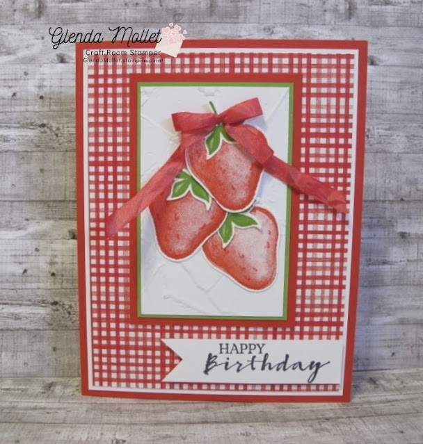 Here's a lovely card I created using the Sweet Strawberry stamp set and Berry Delightful designer paper.
